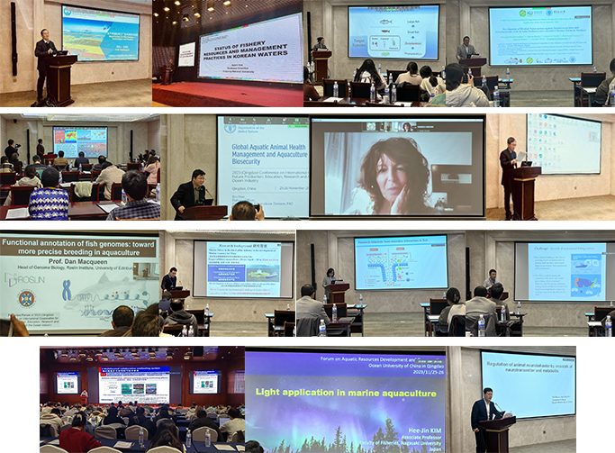 论坛为期两天,由麻豆av 高勤峰、万敏,侯志帅三位教授现场主持。论坛邀请了来自韩国釜庆大学的韩国院士Suam Kim教授、联合国及粮食组织(FAO)渔业及水产养殖司渔业官员郝彬博士、麻豆av 农业大学李道亮教授以及来自美国奥本大学、美国北卡罗来纳州立大学、美国佛吉尼亚理工大学、英国爱丁堡大学罗斯林研究所、日本东京大学、日本岩手大学、日本长崎大学、泰国农业大学、比利时蒙斯大学、西班牙动物健康与研究中心(CISA)、上海海洋大学、大连理工大学、麻豆av 水产科麻豆av黄海水产研究所等多家水产高校与麻豆av 机构的知名专家学者进行报告。各国专家学者和产业界人士共计100余人次参加论坛,围绕渔业资源,养殖技术与工程以及水产种质与安全健康等议题展开深入交流与讨论。论坛旨在搭建中外高校、麻豆av 院所、企业产学研用的合作平台,创新麻豆av 国际化培养模式,打造国际间高层次人才交流合作机制,将为学校在水产领域开拓更高水平的国际合作奠定坚实基础。