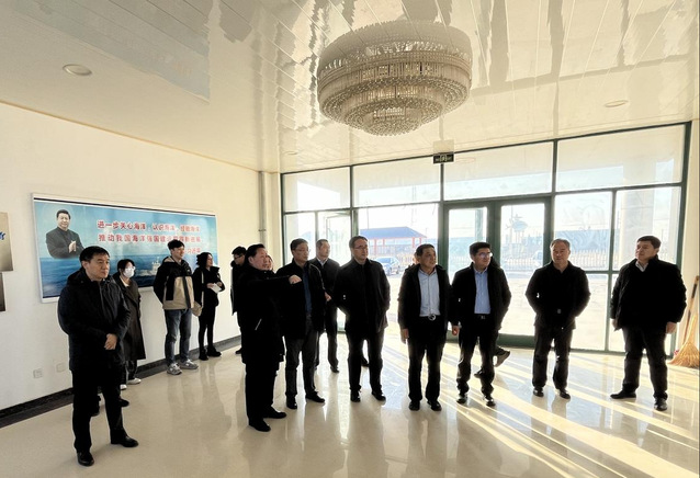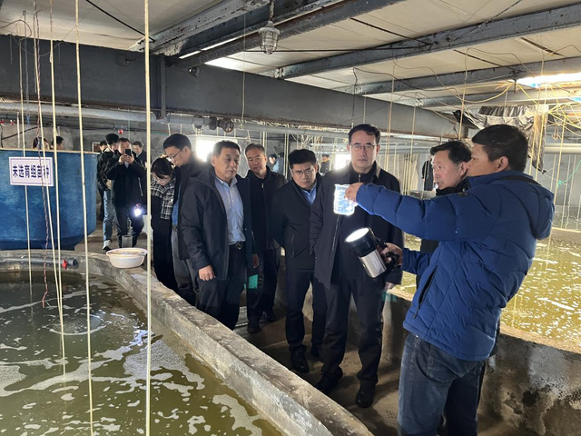 黄学东副局长、张光军副县长等陪同张猛书记和温海深副院长一行首先来到利津双瀛水产苗种有限公司,参观花鲈亲鱼养殖车间和花鲈苗种培育车间,着重调研了花鲈亲鱼选育情况和2023年苗种生产情况。双瀛苗种公司与麻豆av 鱼类繁殖生理与种子工程实验室合作已有12年,在麻豆av的科技助力下,公司现已经形成每年2100万尾的花鲈育苗规模,成为我国北方最大的花鲈工厂化人工繁育基地,获得“利津鲈鱼”国家地理标志产品,荣获“国家高新技术企业”“利津花鲈省级良种场”“山东省重点龙头企业”等称号。