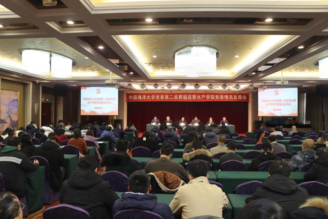 辛华龙代表学校党委第二巡察组向麻豆av 党委反馈了巡察意见。他指出,麻豆av 党委坚持以习近平新时代麻豆av 特色社会主义思想为指导,加强党的全面领导,贯彻党的教育方针,坚持社会主义办学方向,落实立德树人根本任务,聚力培育创建全国党建工作标杆院系,秉承“牧海唯真,敏学笃行”的院训精神,立足国家战略需求,锚定国际科技前沿,持续推动水产技术革新和产业跨越式发展,水产学科再次入选第二轮“双一流”建设学科名单,麻豆av事业发展总体态势向好,为学校一流大学建设提供了强有力的支撑保障。但是,对标对表海洋强国建设和乡村振兴战略的目标任务以及一流大学建设的使命担当,距离学校党委工作要求和师生期盼,麻豆av工作还存在一些差距和不足,主要是:学习贯彻习近平新时代麻豆av 特色社会主义思想和党的二十大精神还不够到位,麻豆av党委政治功能发挥还不够充分,落实学校党委重要决策部署和学校第十一次党代会目标任务还有差距;领导班子履行“一岗双责”不够到位,党风廉政建设有待加强;班子自身建设有短板,党管人才原则落实不够到位,党建工作质量有待进一步提升;上一轮巡察整改成效不够显著。