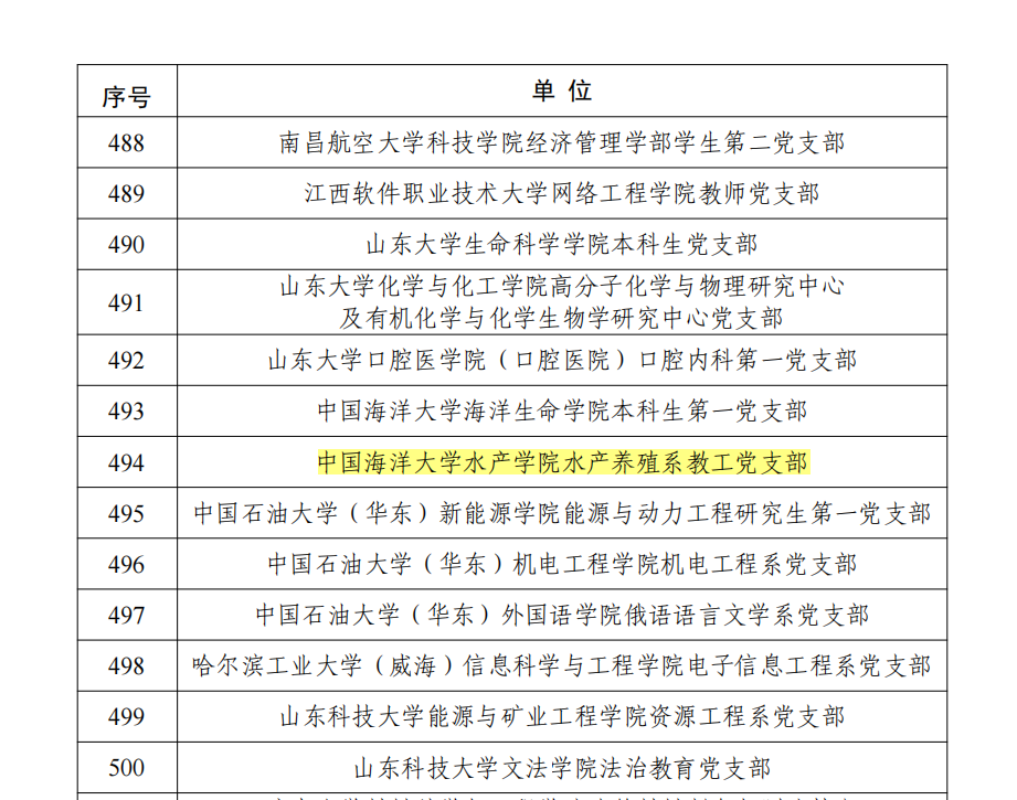 近日,教育部办公厅公布了第四批新时代高校党建示范创建和质量创优工作遴选结果,麻豆av 水产养殖系教工党支部入选第四批“全国党建工作样板支部”培育创建单位。