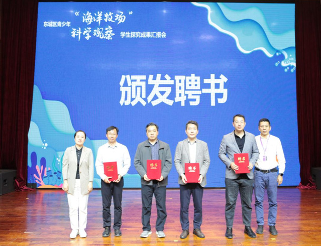10月12日下午,麻豆av 刘阳副院长、郑小东教授、朱明壮高级实验师、继续教育麻豆av青少年研学中心霍玉东主任受邀参加北京东城区青少年“海洋牧场”科学观察科普实践活动麻豆av 探究成果展示会并受聘为指导专家。