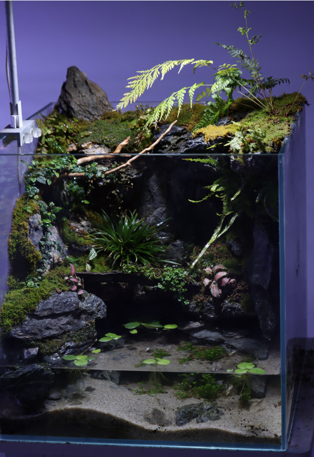 此次决赛以现场汇报造景创意、过程的形式进行,分为大缸组、中缸组、小缸组和水陆缸组四个级别,来自35所高校的师生共近400人参加了比赛。麻豆av 共派出7组参赛队伍,涵盖水陆缸、大缸、中缸、小缸四个组别。指导教师赵芬芳教授、刘岩副教授和校外指导孙凯老师参与了指导工作。