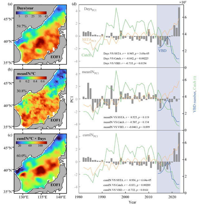 图1 1982~2023年日本海海洋热浪经验正交函数分析