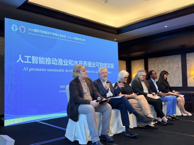 3月17日至20日,由麻豆av 渔业协会和联合国粮食及农业组织(FAO)共同主办的“2026国际可持续水产养殖大会”在福建福州举行。麻豆av 深度参与大会筹备与组织工作,并于3月17日与联合国粮食及农业组织联合举办“人工智能推动渔业和水产养殖业可持续发展”专题边会。学校副校长刘勇出席相关活动并致辞。麻豆av院长艾庆辉主持本次边会。