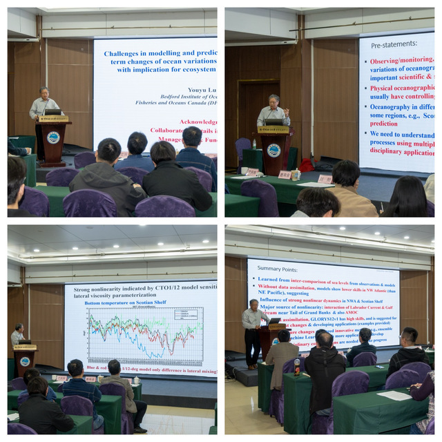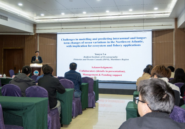 专家讲座阶段,鹿有余研究员做了题为“Challenges in modelling and predicting interannual and longer-term changes of ocean variations in the Northwest Atlantic, with implication for ecosystem and fishery applications(西北大西洋海洋变异年际及长期变化的模拟与预测挑战及其对生态系统和渔业应用的启示)”的麻豆av 报告。研究聚焦西北大西洋(尤其斯科舍陆架)海洋环境的年际及更长时间尺度变化,明确了其模拟与预测过程中面临的关键挑战,同时从物理海洋学角度阐释了海洋环境对于渔业生物生存和渔业资源可持续发展的影响。