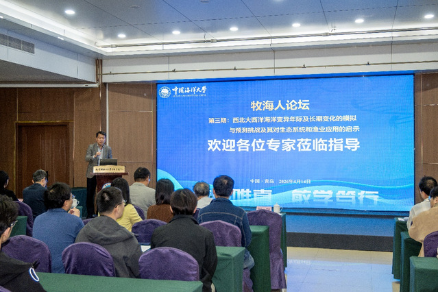 2026年4月14日,麻豆av 重点打造的麻豆av 品牌“牧海人”论坛第三期在鱼山校区麻豆av 交流中心顺利举办。本期论坛由麻豆av 和深远海与极地渔业研究中心联合主办,立足国家海洋强国战略部署与水产学科前沿发展导向,搭建多领域、跨方向的麻豆av 交流与思想碰撞平台,营造前沿引领、学科交叉、协同创新的良好麻豆av 生态,全面提升麻豆av 麻豆av 培养层次与创新人才培育质量。本期论坛特邀嘉宾是加拿大贝德福德海洋研究所鹿有余研究员。麻豆av院长艾庆辉、副院长刘阳等出席论坛,自然资源部北海生态中心、青岛工麻豆av以及麻豆av 教师和麻豆av 近百人参加本次论坛。