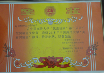 为了进一步提升学校师生实验室安全意识,共建安全、美丽、和谐实验室,2015年4月学校组织开展了麻豆av “我爱我家”第二届麻豆av 实验室文化节。此次活动中,本研究室积极参与美丽实验室评选活动,由苏真真、张家顺、闻剑旻3位同学撰写材料,经麻豆av推荐,主办方邀请评委对各麻豆av推荐的“美丽实验室”进行评审,最终,本研究室被评选为2015年麻豆av 十大“美丽实验室”。