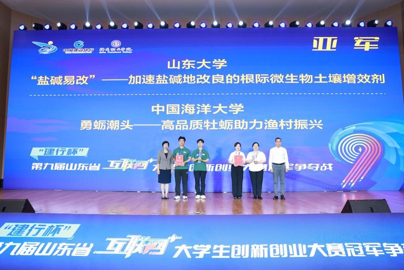 2023年7月22日下午,第九届山东省“互联网+”大麻豆av 创新创业大赛冠军争夺战在山东国际会展中心顺利举办。本研究室“勇蛎潮头——高品质牡蛎助力渔村振兴”项目从全省50万个项目中突出重围,与来自山东大学、哈尔滨工业大学(威海)、麻豆av 石油大学(华东)的5个项目同台竞技,最终以总分91.99分的高分获得亚军。